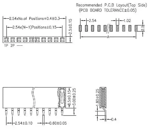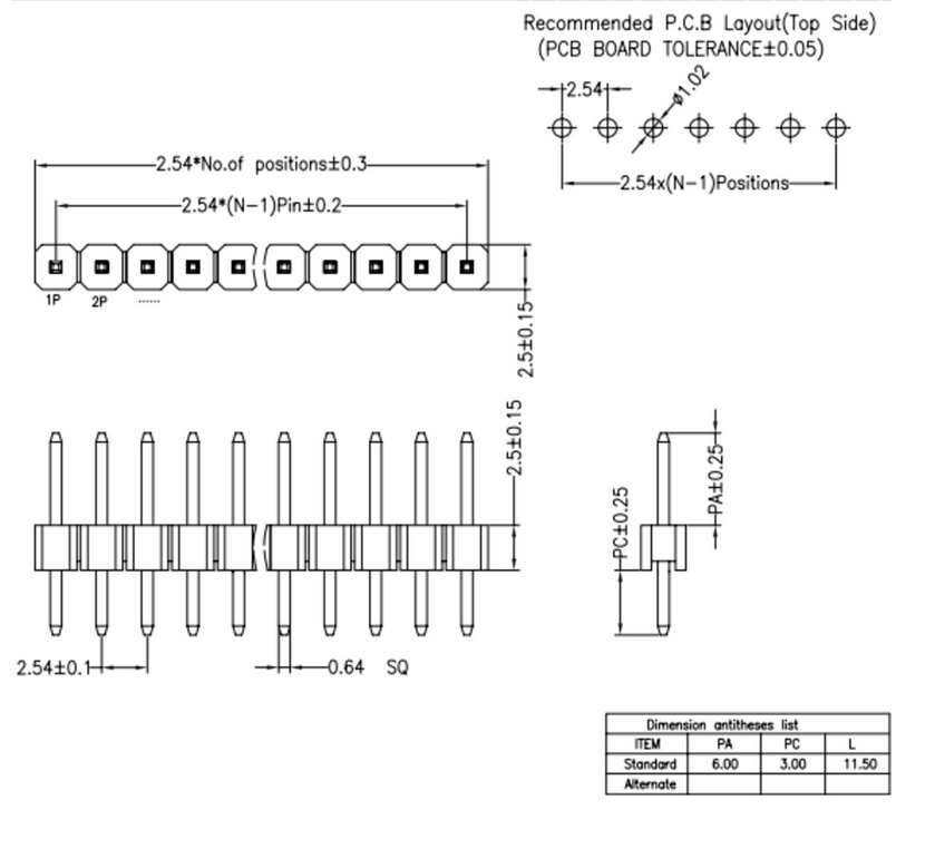 1. Spacing: 2.54mm
