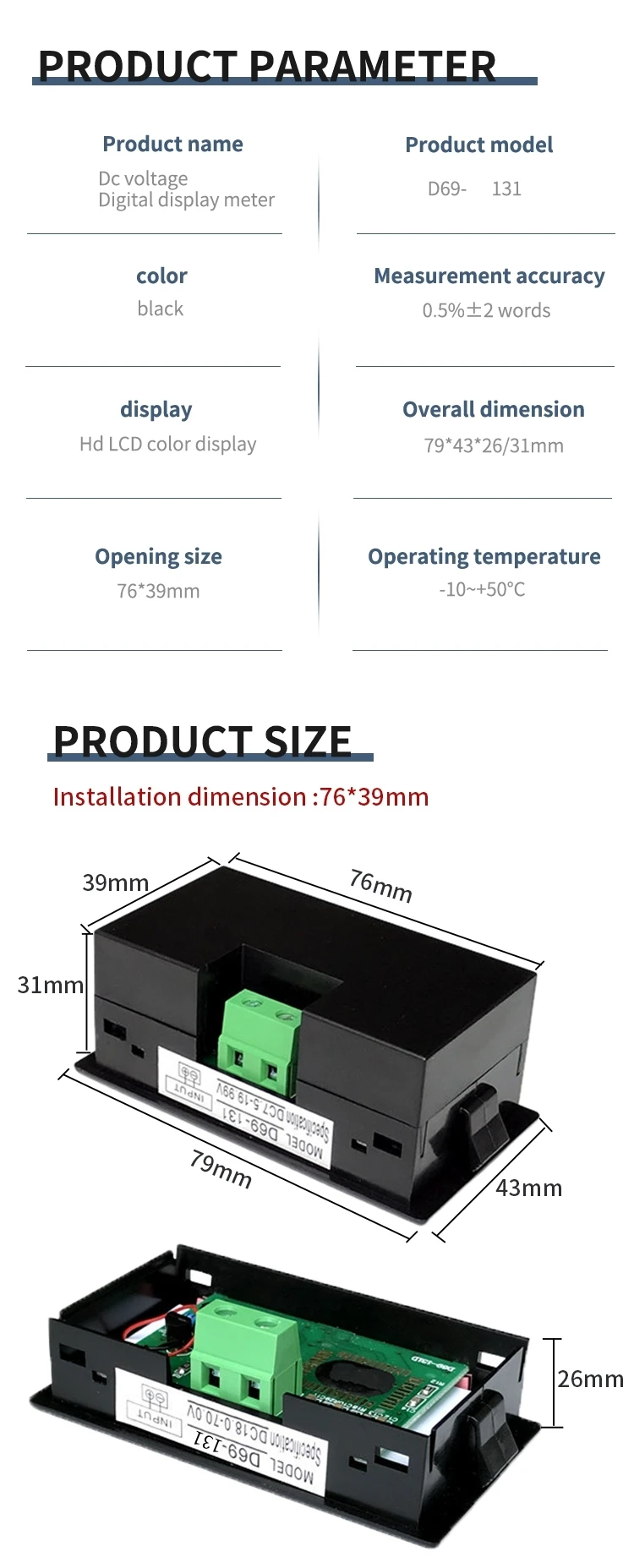 D69-131 DC Voltmeter Digital Display 12V24V48V72V Electric Vehicle Battery Test LCD Digital Meter Voltage Test Instrument