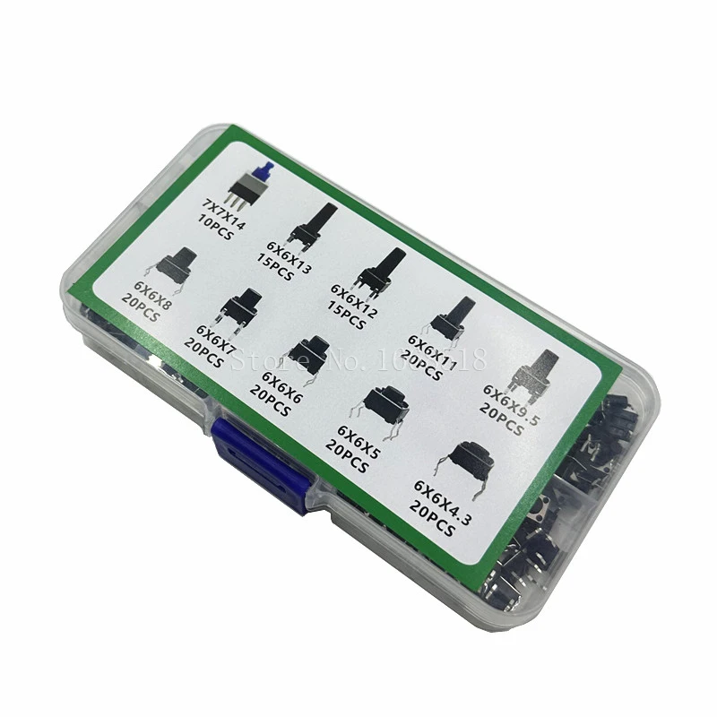 10 Values 180PCS Tactile Push Button Switch Mini Momentary Tact Assortment Kit DIY for Arduino Switch 6*6 4.3MM~13MM DIP 4P